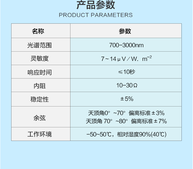 TBQ-JHW型近紅外輻射傳感器主要測量光伏范圍在700-3000nm之間的輻射值。其特點在于高精度測量、快速響應以及出色的穩定性,能夠精確捕捉并測量近紅外輻射的強度,為用戶提供準確可靠的數據支持。該產品適用于多種領域,包括氣象觀測、環境監測、工業過程控制等,幫助用戶實時監測和分析近紅外輻射的變化,為科研、生產及決策提供有力依據。